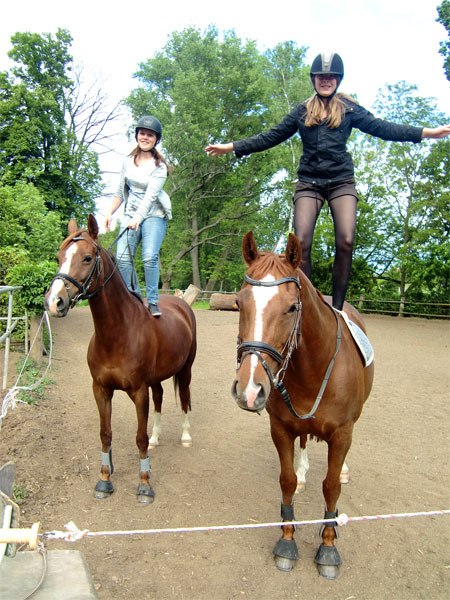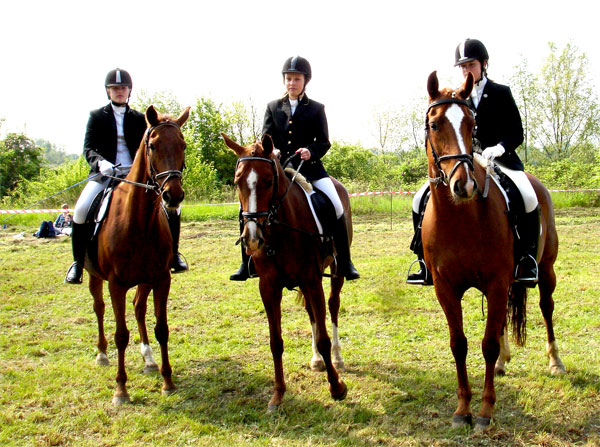 Wir, die Sparte Reiten, sind noch sehr jung und möchten uns kurz vorstellen Da ich selbst auch reite und meine Töchter, Alica und Celina, regelmäßig zu den Turnieren begleite, habe ich im Februar 2011 das Amt der Spartenleitung sehr gerne Übernommen. Unsere Turnierreiter der Leistungsklasse 6 sind Tabea Lieber, Alica Hammann und Celina Hammann. Sie starten in Prüfungen der Klasse E und A und haben unsere Sparte in der letzten Saison 2011 u.a. in Hildesheim Steuerwald, Burgdorf, Kolshorn, Hildesheim Marienburg und Hildesheim Hüddessum erfolgreich vertreten. In der Leistungsklasse 0 sind für unseren Verein Mathea Kost, Marisa Lieber und Antonia Grebe mit ihren Pferden unterwegs. Sie dürfen Wettbewerbe der Klasse E reiten. Auch sie haben einige Platzierungen in 2011 erreicht. Das Jahr 2012 startete für unseren Verein gleich sehr erfolgreich. Im März wurde Alica Hammann mit ihrem Pferd Futura in Hildesheim- Steuerwald - Kreismeisterin der Nachwuchsreiter- (eine Kombinationswertung aus E- Dressur und E-Stil-Springen). Ein sehr schöner Turniersaisonbeginn. Wir hoffen, dass es so weitergeht! Wer noch eine Vereinszugehörigkeit als Voraussetzung für einen Turnierstart benötigt, ist bei uns herzlich willkommen. Und das alles, ohne lästige Arbeitsstunden ableisten zu müssen. Mit reiterlichem Gruß Christiane Hammann |