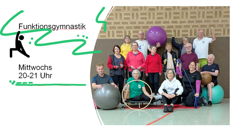 Funktionsgymnastik: Dieses Sportangebot hat eine lange Tradition. Seit mehr als 35 Jahren können Männer und Frauen sich wöchentlich ihrer körperlichen Gesundheit widmen und mit sehr abwechslungsreichen Übungen ihre Beweglichkeit und Fitness erhalten oder wieder erlangen. Wie gut einem der Ausgleich z.B. für Nacken-, Schulter- und Rückenmuskulatur tut, merkt man erst, wenn man ihn erlebt. Wie wichtig Übungen für Gleichgewicht, Koordination, Muskelaufbau und Ausdauer sind, wissen die meisten theoretisch aber um sich zu überwinden, hilft der wöchentliche Termin und die freundliche aber unermüdliche Ansage der Kursleitung Karin Schmollak. Wir freuen uns über Verstärkung, jeden Mittwoch von 20-21 Uhr in der Dingelber Sporthalle. Im Sommer auch manchmal auf dem Sportplatz. |