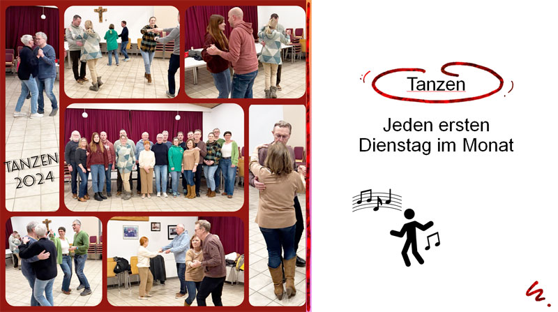 Tanzen Die Discofox Gruppe entstand im Frühjahr 2023 anlässlich des Sportfestes. Daraus entwickelte sich ein regelmäßiger Termin. Nun können die aktuell zehn Paare unter der fachkundigen Anleitung von Dieter Kremin ihre Kenntnisse im Discofox und auch im langsamen Walzer lebendig halten und ausbauen. Mittlerweile werden im Discofox 16 verschiedene Figuren getanzt. Die Treffen finden alle vier Wochen dienstags im DGH Dingelbe statt. |